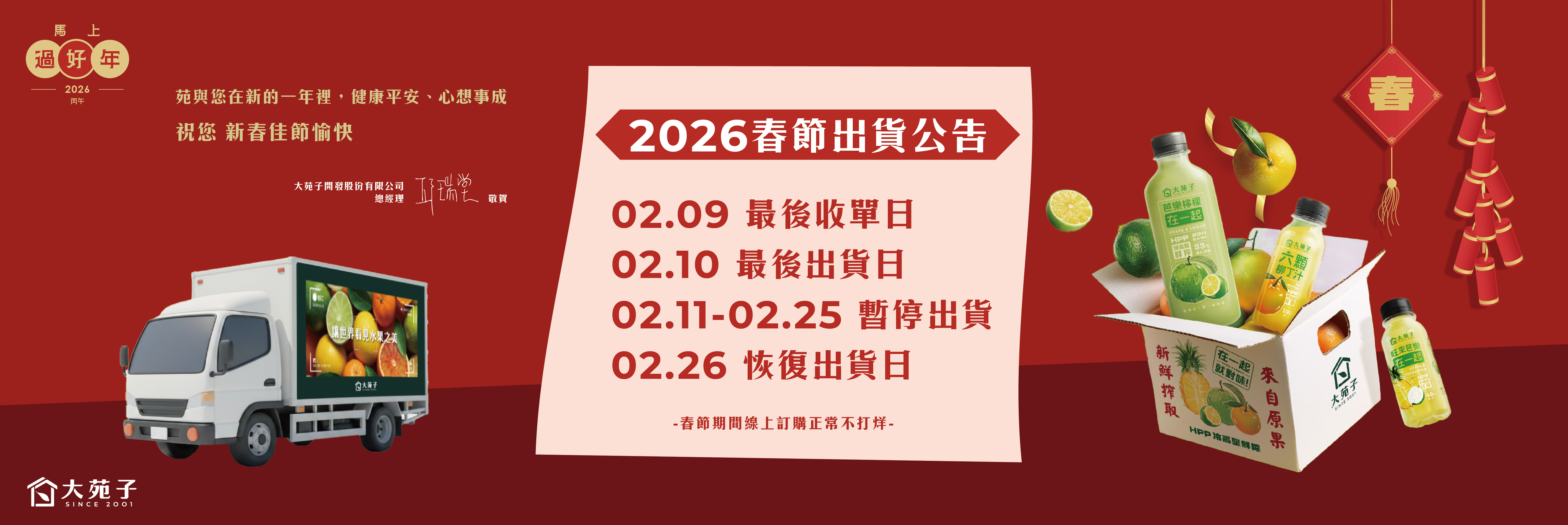2026春節出貨公告