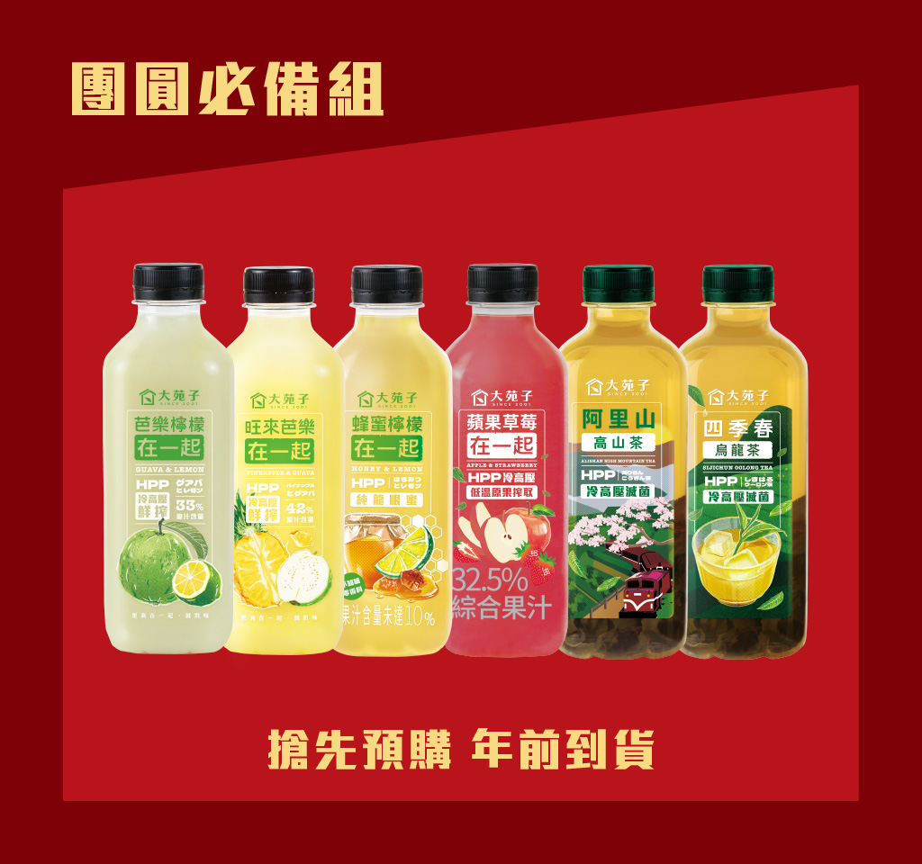 【預購-團圓必備組】芭樂檸檬在一起 850mL x1 旺來芭樂在一起 850mL x1 蜂蜜檸檬在一起 850mL x1 蘋果草莓在一起 850mL x1 四季烏龍茶x1 阿里山高山茶x1