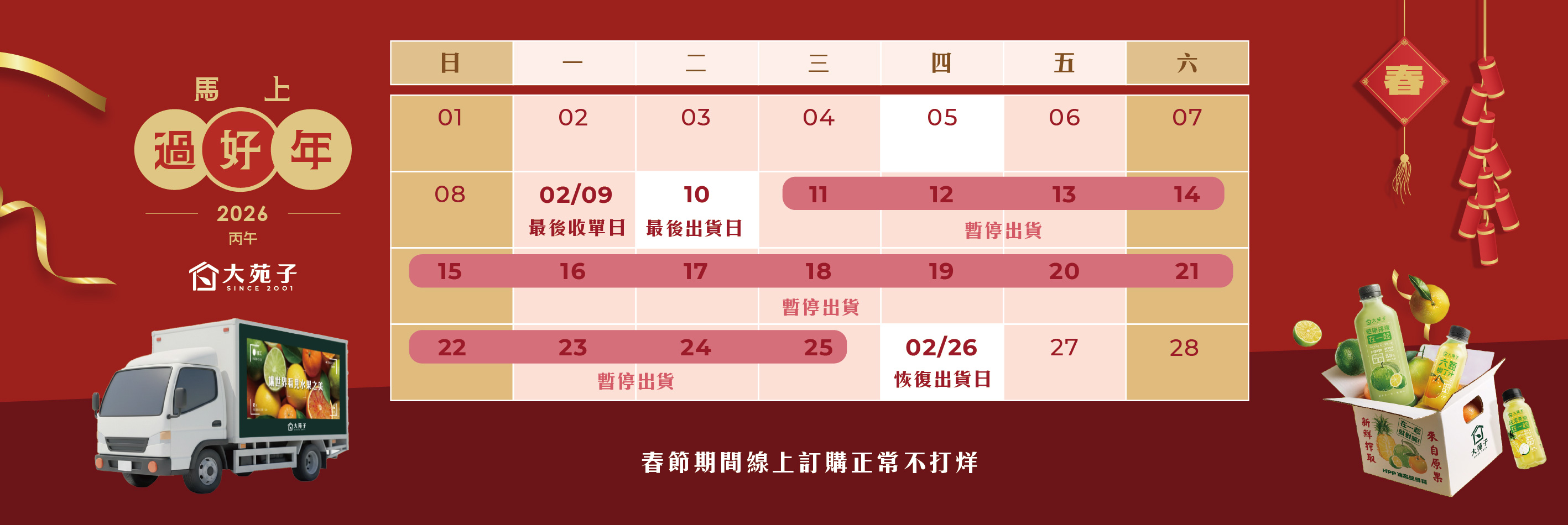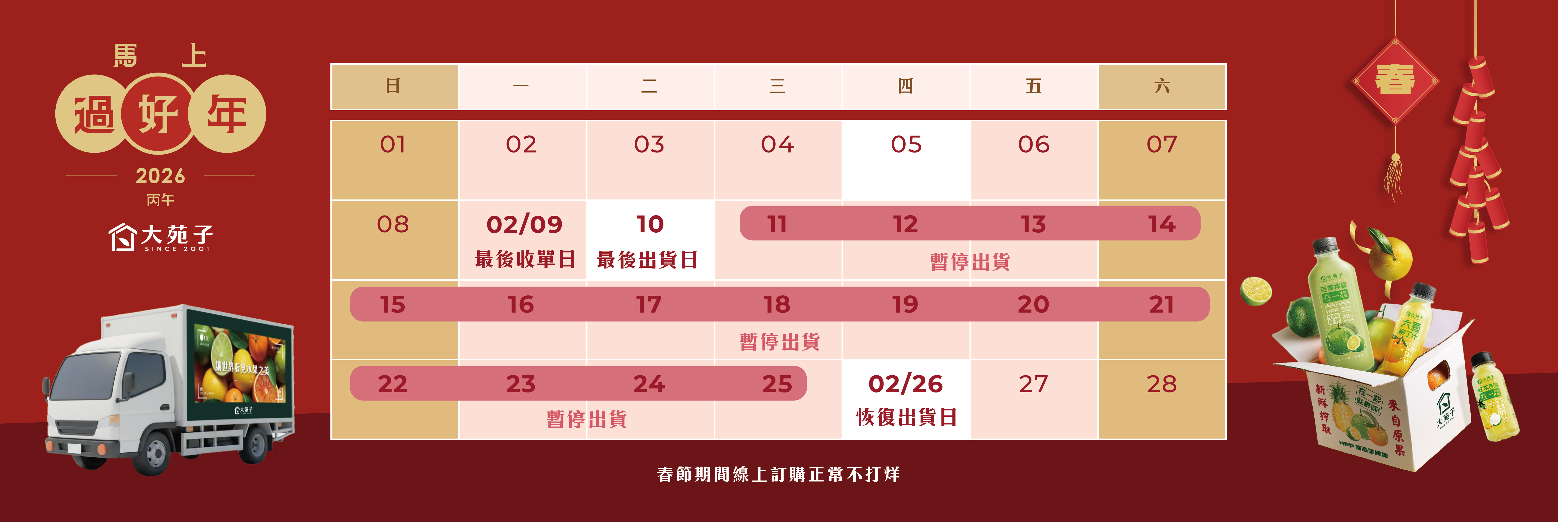 2026春節出貨公告