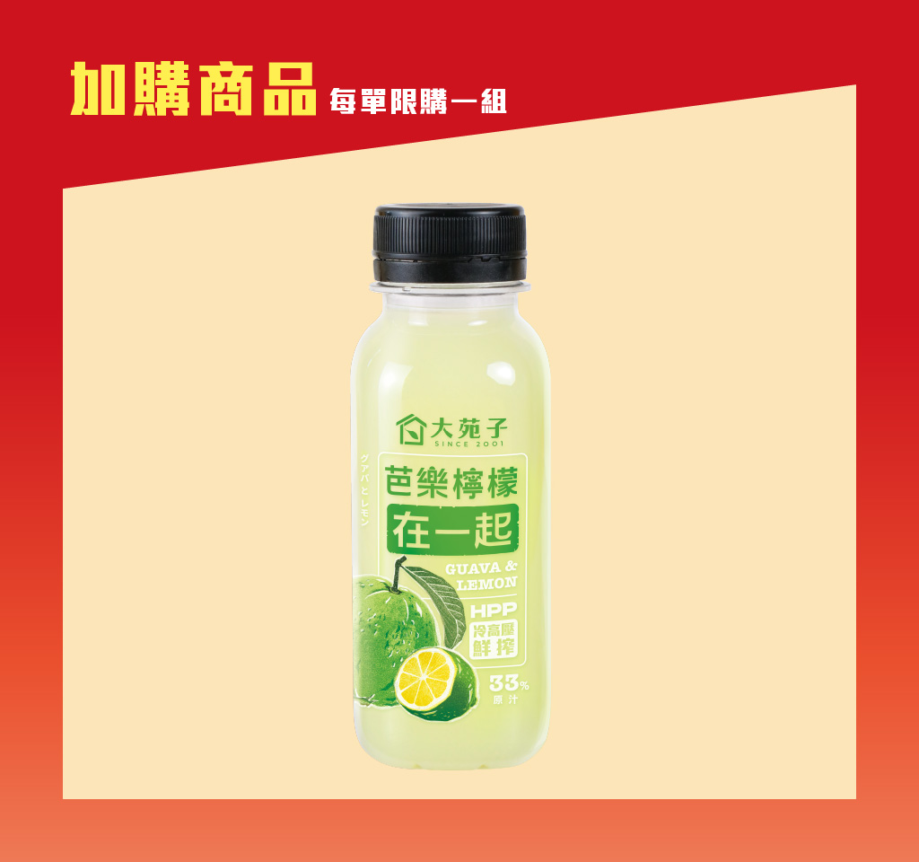 一人限購 1 組 大苑子門市鮮搾明星商品「芭樂檸檬」, 維他命 C 界最強組合,平均每 12 秒賣1 杯 清爽解膩,愛不釋手!