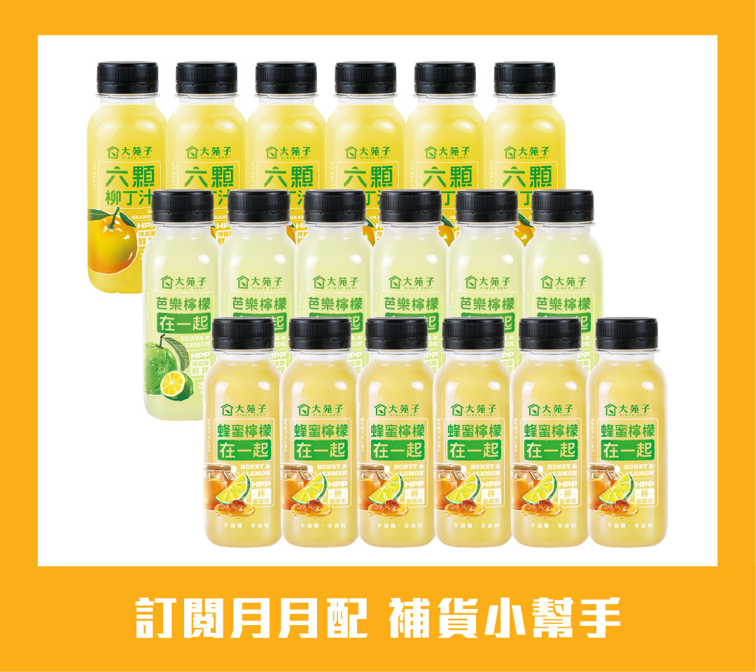 內含:六顆柳丁汁 250mL x6、芭樂檸檬在一起 250mL x6、蜂蜜檸檬在一起 250mL x6