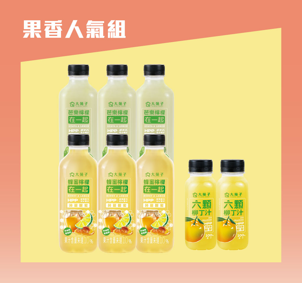 【果香人氣組】芭樂檸檬在一起 850mL x3、蜂蜜檸檬在一起850mLx3 、六顆柳丁汁 250mL x2