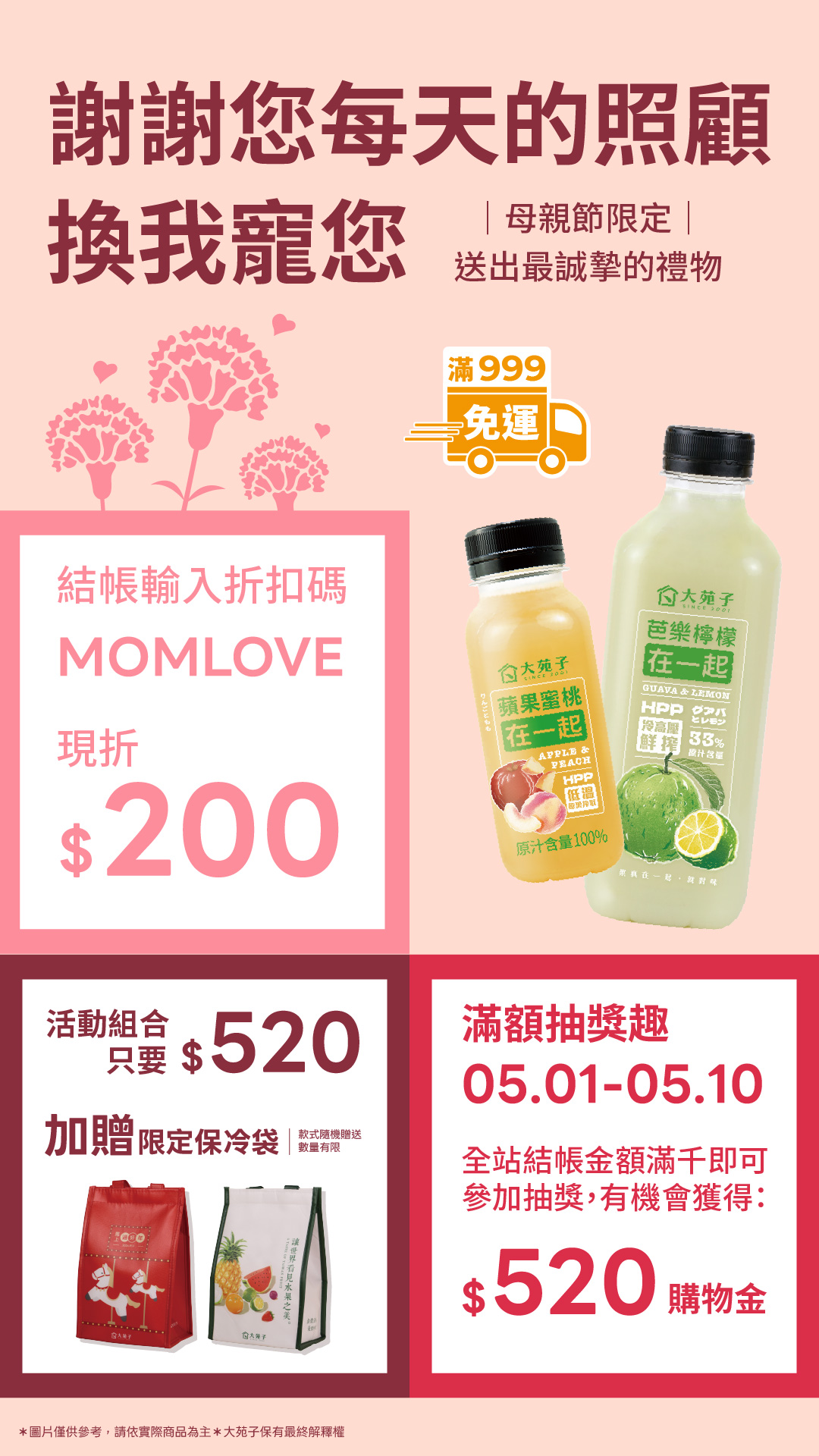2. 如遇天候不佳、路段整修、交通事故、天災等不可抗因素,可能會延遲送貨時間,敬請見諒。