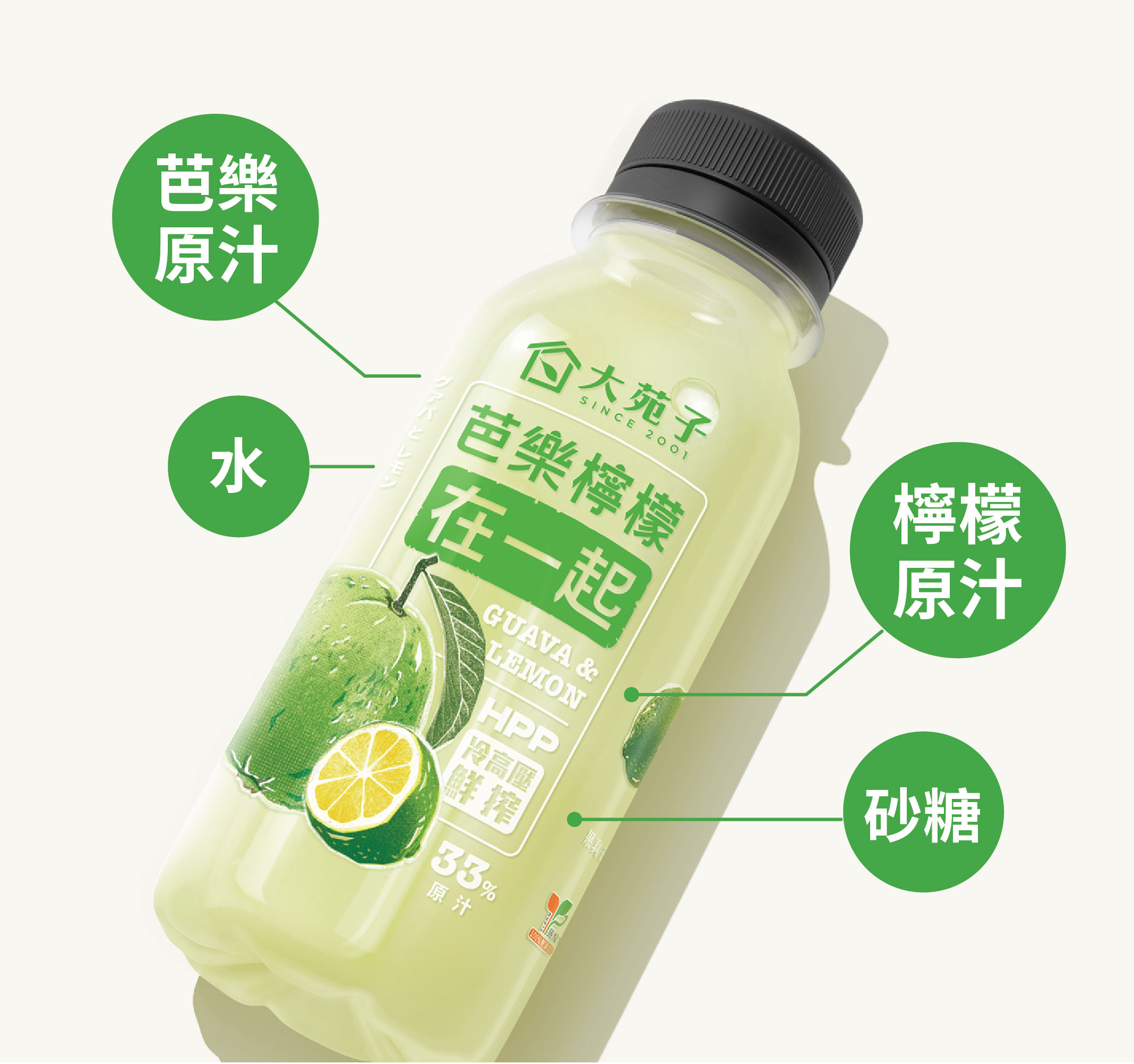 水、芭樂原汁、砂糖、檸檬原汁 |